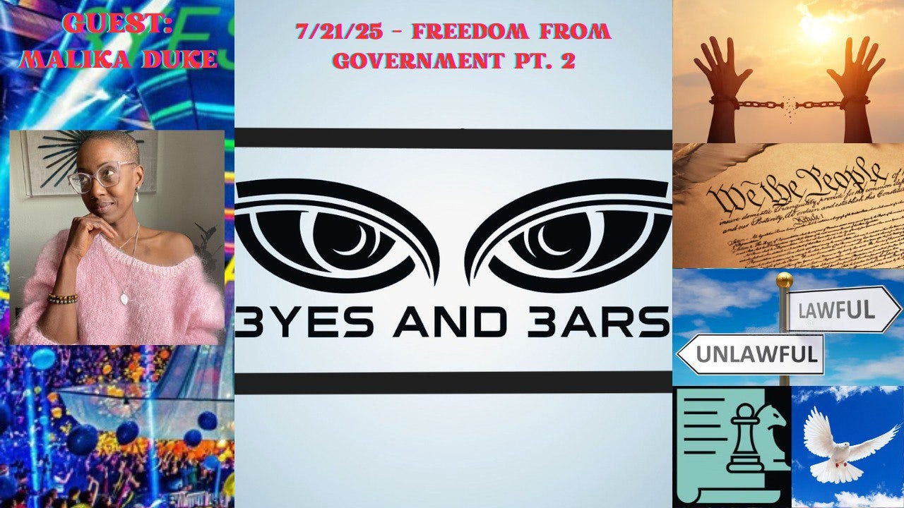 9pm ET LIVE! (no YouTube): 7/21/25 Freedom From Government Part 1 w/ Malika Duke | EyesAndEars