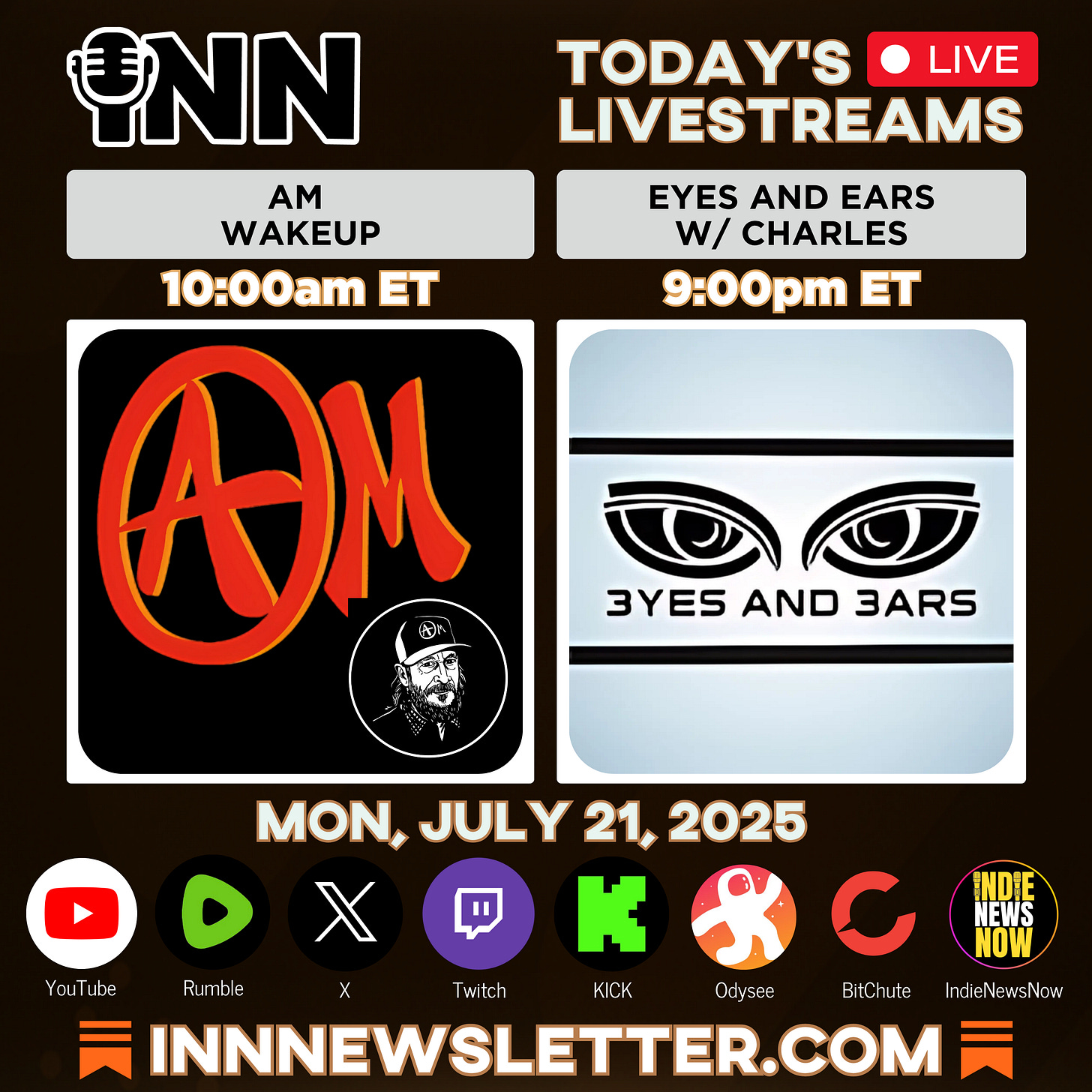 and10am ET LIVE! (simulcast to X, Twitch & KICK) LIVE!: 07/21/2025 Monica Perez | The Reverse Russiagate | Mark Steeves | AM Wakeup