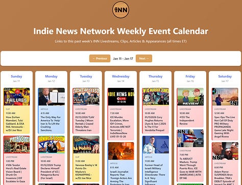 INN This Week 1/11 - 1/17/26 @GetIndieNews @IndLeftNews @AngelJRivera08 @TheIndReview @AMWakeup @SnowHimbo @ReefBreland @ogbonna_Collin @The_Dissident30 @SlowNewsDayShow @IndieMediaToday @IN_Now_Live