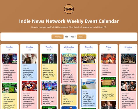 INN This Week 2/1 - 2/7/26 @GetIndieNews @IndLeftNews @AngelJRivera08 @ReefBreland @ogbonna_Collin @TheIndReview @AMWakeup @The_Dissident30 @SlowNewsDayShow @IN_Now_Live @TLAVagabond