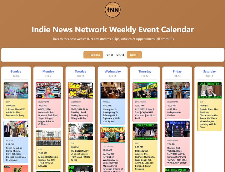 INN This Week 2/8 - 2/14/26 @GetIndieNews @IndLeftNews @AngelJRivera08 @ReefBreland @ogbonna_Collin @TheIndReview @AMWakeup @The_Dissident30 @SlowNewsDayShow @IN_Now_Live @TLAVagabond