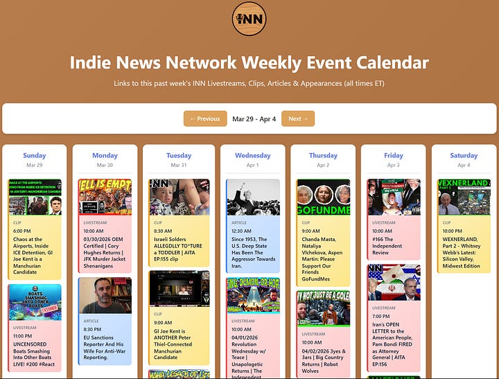INN This Week 3/30 - 4/4/26 @GetIndieNews @IndLeftNews @AngelJRivera08 @ReefBreland @ogbonna_Collin @AMWakeup @The_Dissident30 @SlowNewsDayShow @TheIndReview @IndieNewsNow_ @TLAVagabond