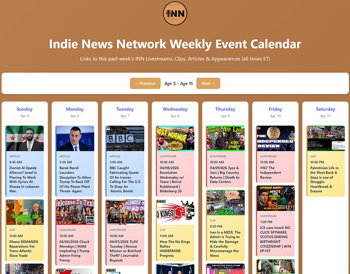 INN This Week 4/5 - 4/11/26 @GetIndieNews @IndLeftNews @AngelJRivera08 @jesse_jett @ReefBreland @ogbonna_Collin @AMWakeup @The_Dissident30 @SlowNewsDayShow @TheIndReview @IndieNewsNow_ @TLAVagabond
