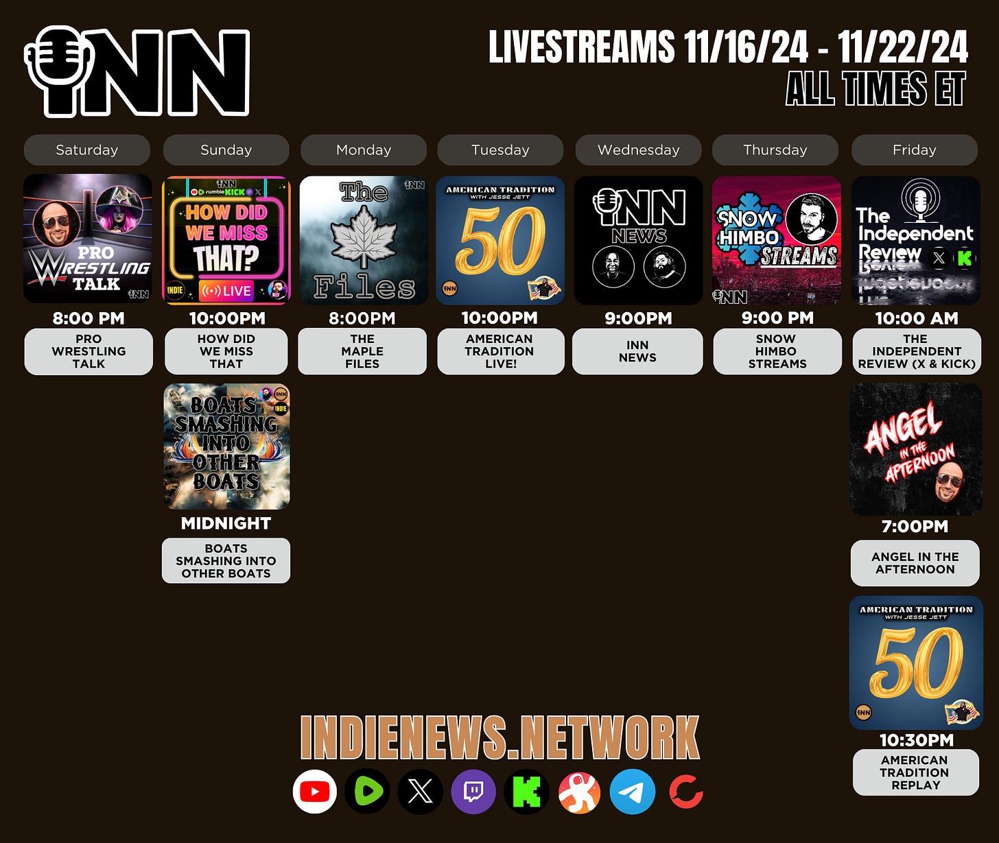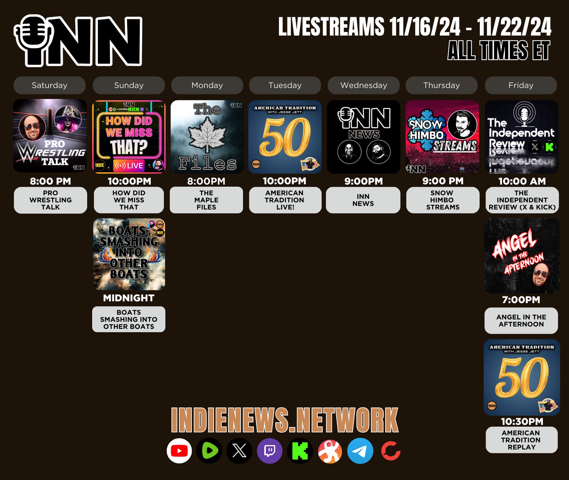 INN This Week 11/16 thru 11/22/24 | @GetIndieNews @jesse_jett @IndLeftNews @AngelJRivera08 @SnowHimbo @ogbonna_collin @ReefBreland @leftist_news12 @HowDidWeMissTha