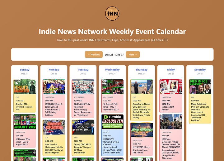 INN This Week 12/20 - 12/27/25 @GetIndieNews @IndLeftNews @AngelJRivera08 @TheIndReview @AMWakeup @SnowHimbo @ReefBreland @ogbonna_Collin @The_Dissident30 @SlowNewsDayShow @IndieMediaToday