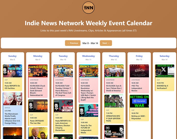 INN This Week 3/8 - 3/14/26 @GetIndieNews @IndLeftNews @AngelJRivera08 @SnowHimbo @ReefBreland @ogbonna_Collin @yopasta @AMWakeup @The_Dissident30 @SlowNewsDayShow @TheIndReview @IndieNewsNow_