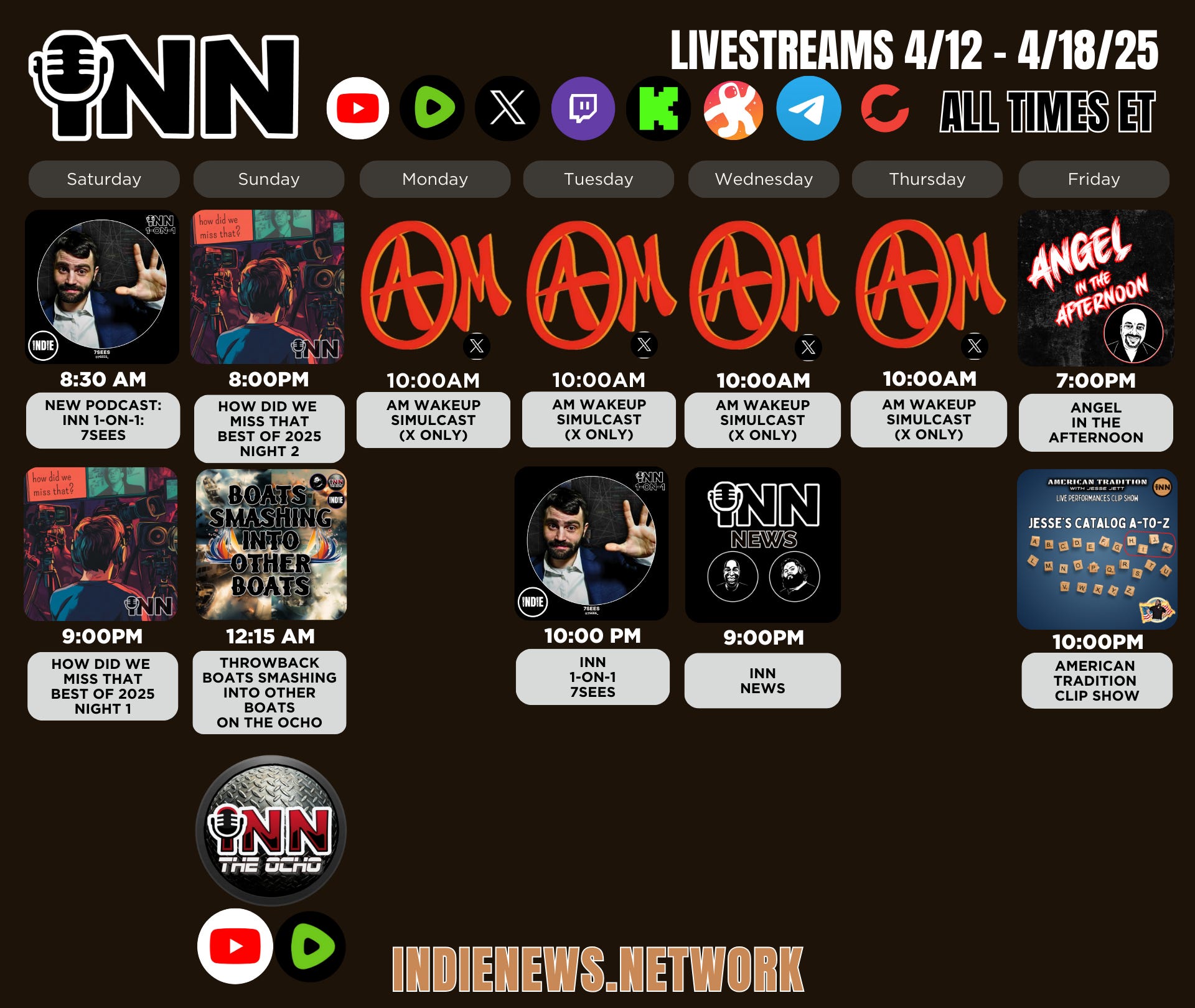 INN This Week 4/12 - 4/18/25 | @GetIndieNews @jesse_jett @IndLeftNews @ReefBreland @ogbonna_collin @leftist_news12 @AMWakeup @SlowNewsDayShow @TheIndReview @TLAVagabond @7SEES_ @FiorellaIsabelM