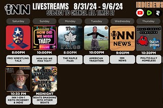 INN This Week 8/24 thru 8/30/24 | @GetIndieNews @jesse_jett @IndLeftNews @AngelJRivera08 @SnowHimbo @BigMadCrab @ogbonna_collin @ReefBreland…