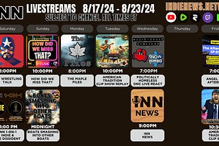 INN This Week 8/17 thru 8/23/24 | @GetIndieNews @jesse_jett @IndLeftNews @AngelJRivera08 @SnowHimbo @BigMadCrab @ogbonna_collin @ReefBreland…
