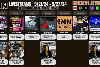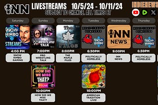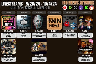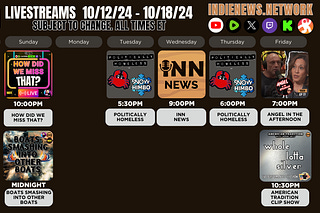 INN This Week 10/12 thru 10/18/24 | @GetIndieNews @jesse_jett @IndLeftNews @AngelJRivera08 @leftist_news12 @SnowHimbo @BigMadCrab…